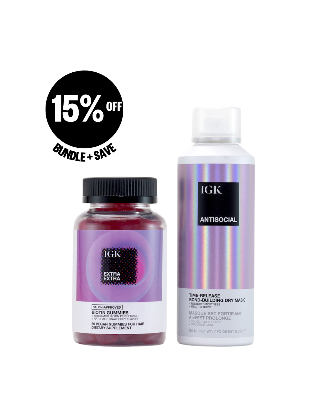 Healthy Hair In & Out with this Dynamic Duo of our new EXTRA EXTRA Biotin Gummies + Best Selling Viral ANTISOCIAL Bond Building Dry Hair Mask