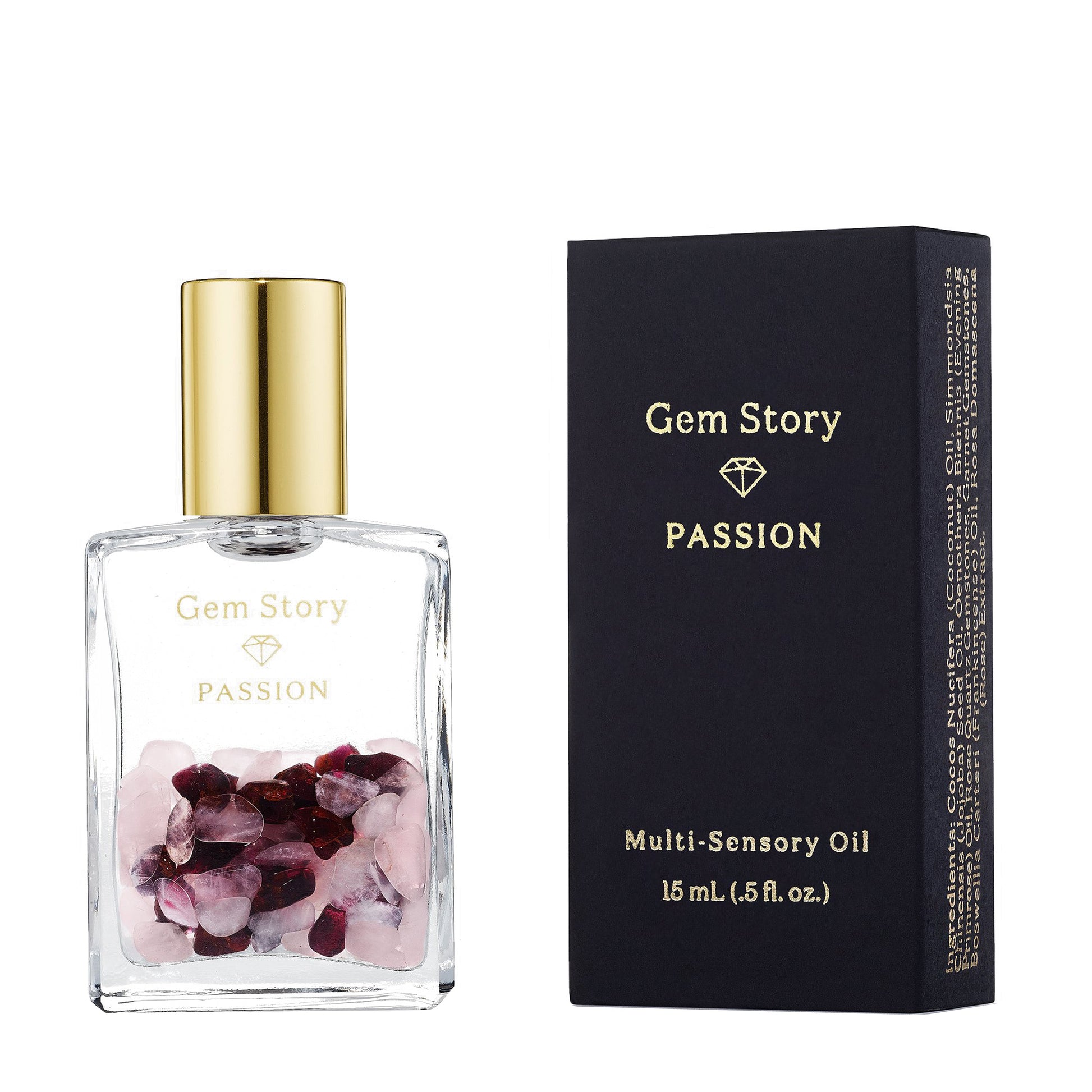Gem Story multi-sensory oils are a collection of luxe, all natural, non toxic, oil based perfumes infused with semi-precious crystals.?This roll on perfume?oil is an?intoxicating infusion of rose quartz and garnet crystals, scented with therapeutic grade frankincense essential oil and rose extract.? Can be used as aromatherapy for meditation, yoga and ritual.?Phthalate free, alcohol free, and toxin free.