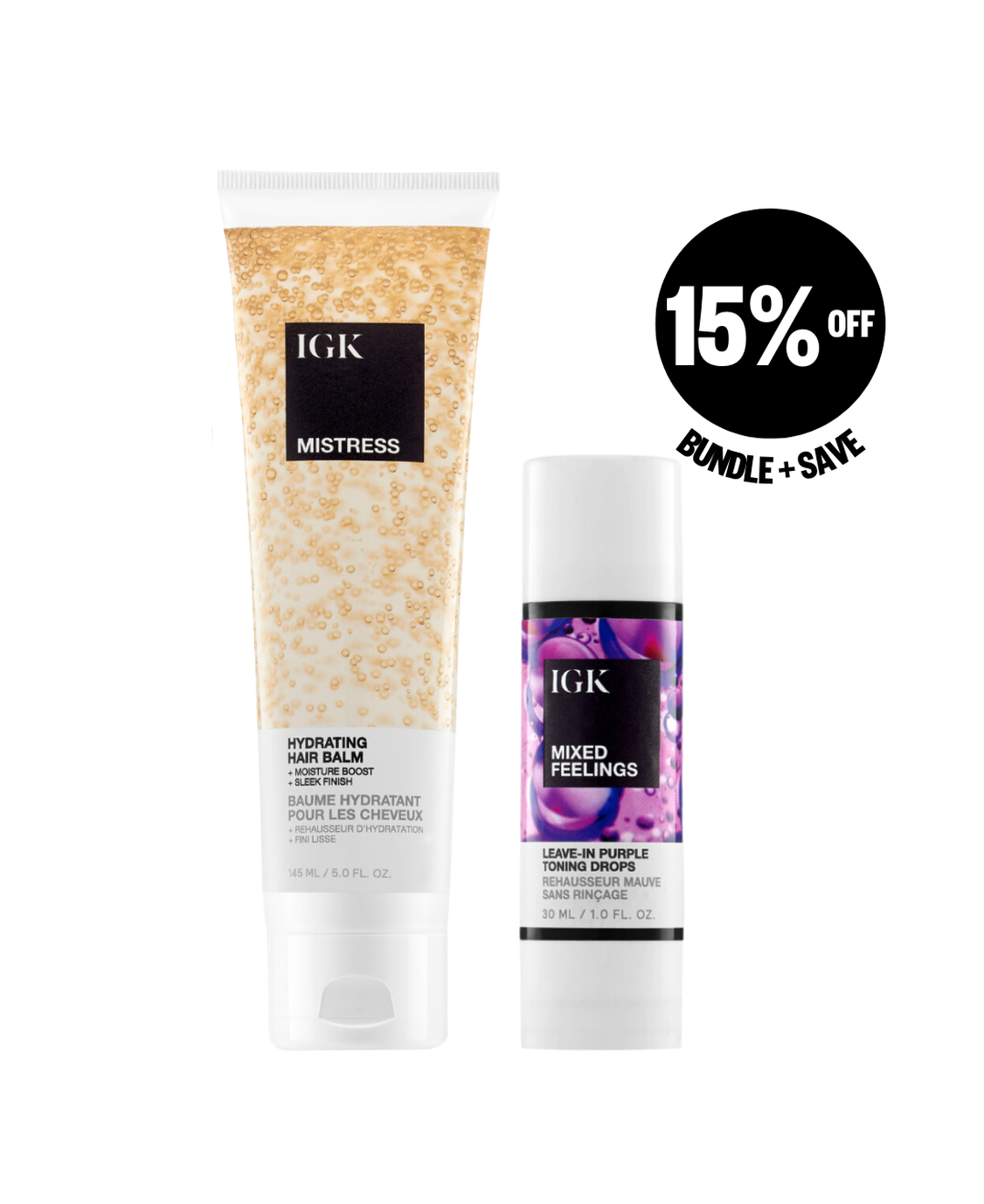 MIXED FEELINGS turns our favorite Leave-In Conditioner MISTRESS into a custom-mixed toner to banish brassiness and keep blonde, silver, or violet shades true. The concentrated purple leave-in pigment tones and cools, while prickly pear extract softens and boosts shine.?
