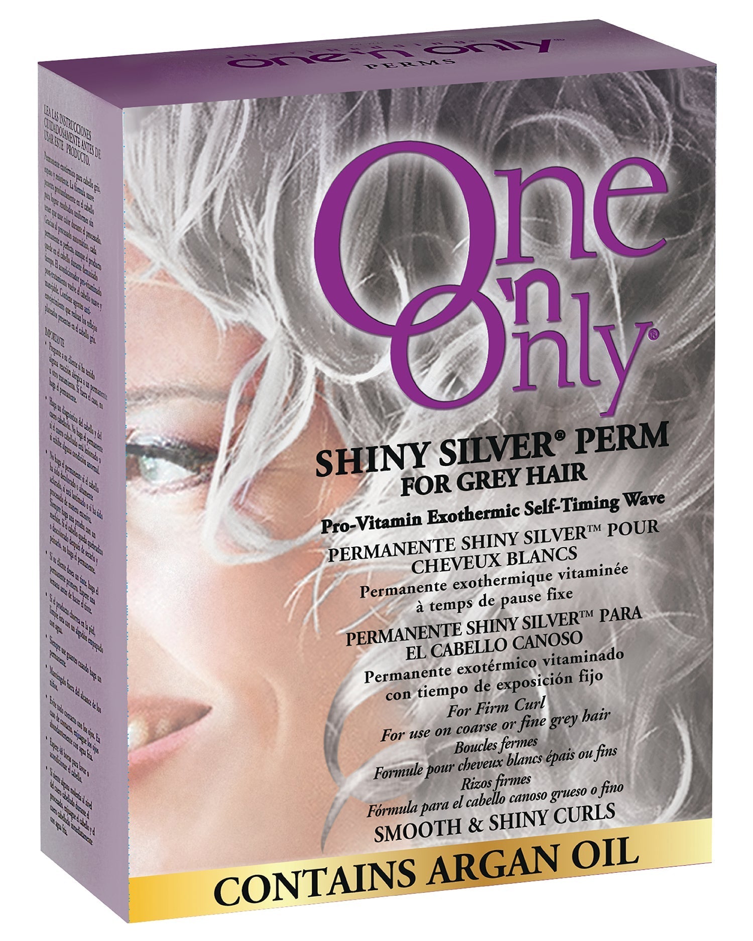 A One 'n Only Shiny Silver Perm creates soft, manageable curls with an anti-yellowing formula that enhances the natural silver highlights found in grey hair. The self-heating (exothermic) formula assures gentle, deep, even processing. Infused with argan oil for extra nourishment.
