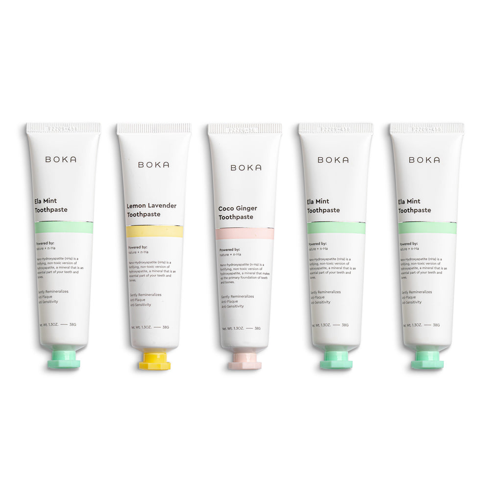 You鈥檝e decked the halls, now it鈥檚 time to stuff the stockings. We鈥檝e got you covered with a bundle of five travel-size n-Ha Toothpastes in a variety of flavors. And these aren鈥檛 your average flavors, either. Each bundle contains refreshing Ela Mint, vibrant Lemon Lavender, and warming Coco Ginger, plus two extra spots you can fill with your flavor(s) of choice out of those three. Our safe-to-swallow formula is a perfect fit for the whole family, from kids to grandparents. It trades fluoride for nano-hydroxyapatite (n-Ha) to remineralize and fortify teeth with every brush. It freshens breath, whitens teeth, and even helps close holes on enamel that can cause tooth sensitivity. Now that鈥檚 something to smile about.